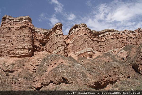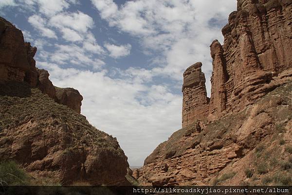 兩三個小時的上下坡後,我已經沒那力氣上坡了,於是我們就轉入一條沒有河水的谷地,兩處盡是高聳峻奇的啀岸