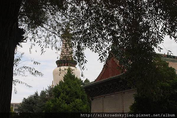 其後的土塔为明代建築,原名彌陀千佛塔,由塔基、塔身、塔刹三部分组成,带有濃郁的磚土混築喇嘛教式风格