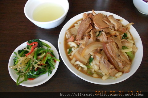 中午終於去吃了王師傅推薦的孫記炒泡,聽起來名字很炫,但其實就是很普通的帶汁炒麵,也點了看起來很熱門的滷豬腳,但嚐起來都還蠻普通的,湯救世主麵湯,可幫助消化